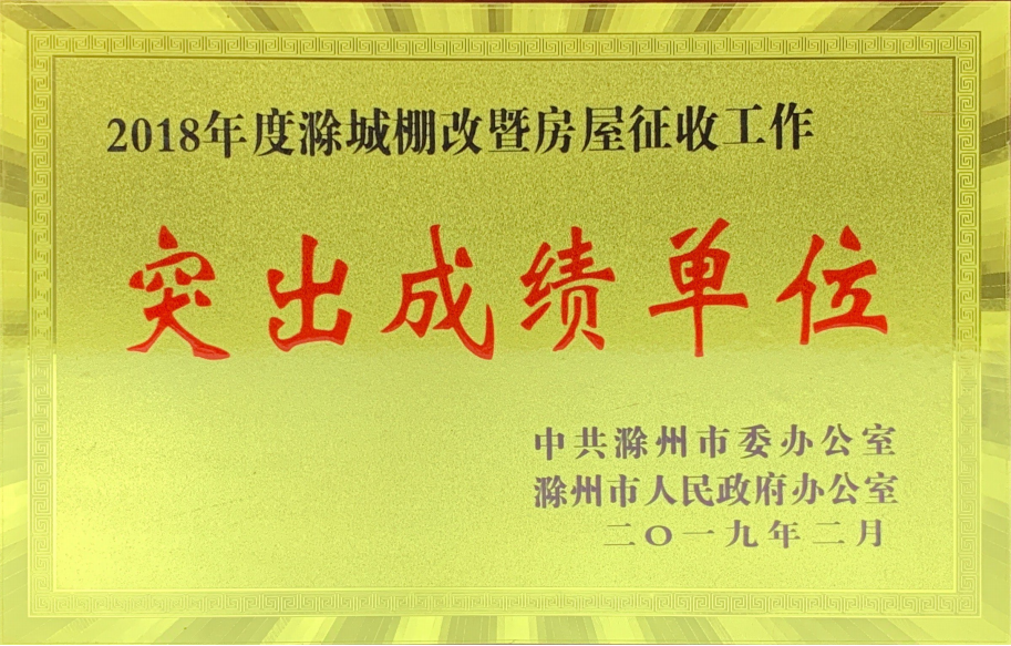 2018年度滁城棚改突出成绩单位