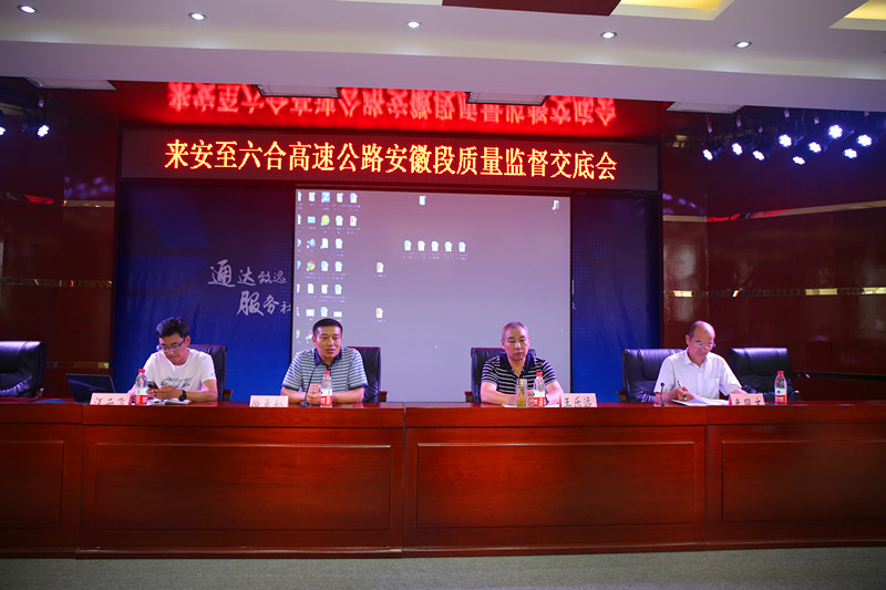 2020年7月17日,来六项目质量安全监督交底暨质量安全培训会在来六公司召开,省交通建设工程质量监督局公路工程监督处处长倪良松、安全监管处处长王乐远等对来六高速安徽段进行质量安全监督交底,并开展质量安全教育培训。来六项目建设、设计、施工、监理、中心试验室等单位约60人参加培训。