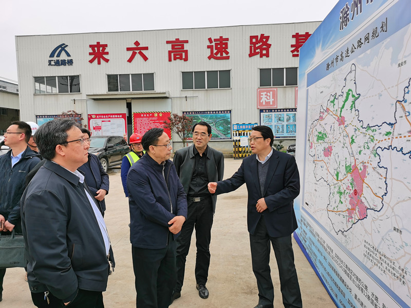 4月7日,安徽省交通运输厅党组成员、副厅长徐敬启带领厅规划处、运输处、公路处有关负责同志调研来六高速公路建设情况,副市长龚健勇、市交通运输局局长金同碧等陪同调研。