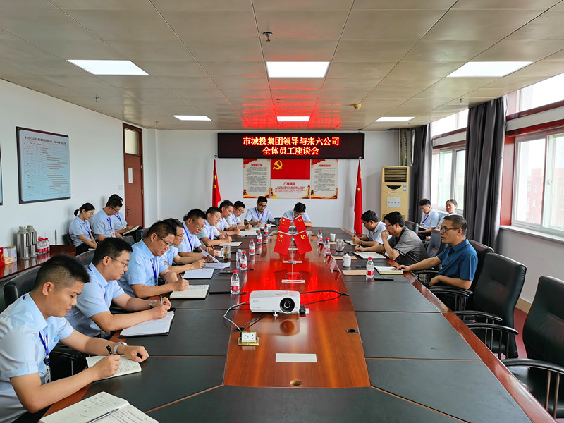 调研中,pg麻将胡了 主要领导与来六公司全体员工进行座谈。