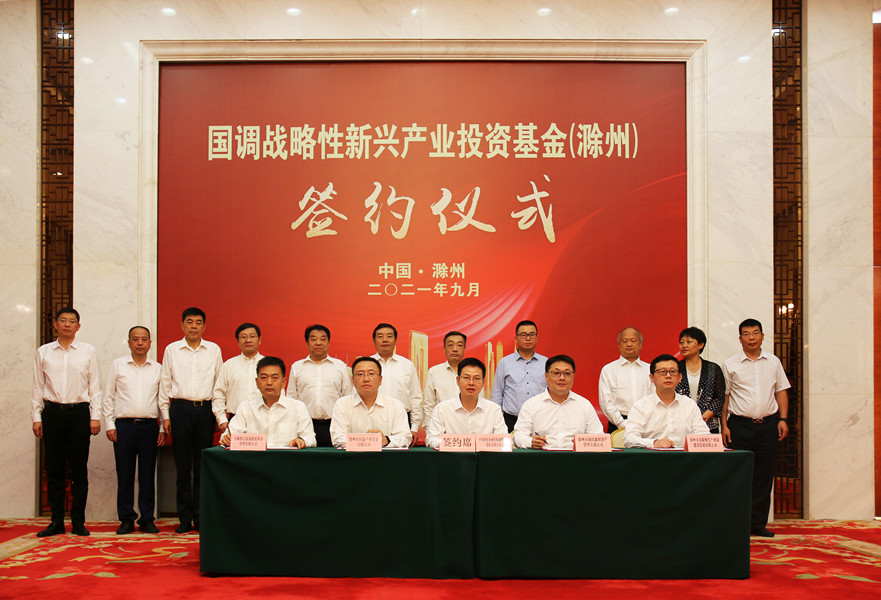 9月28日,国调战略性新兴产业投资基金(滁州)签约仪式在滁举行。省政协副主席牛立文,市委书记许继伟,市委副书记、市长吴劲,市人大常委会主任王图强,市政协主席汪建中,市委副书记金力,市委常委、常务副市长邓继敢,滁州经开区管委会主任吴孝水,中新苏滁高新区管委会主任杨广兰,市政府秘书长孙新安;中国诚通控股集团有限公司副总经理、国调基金总经理童来明,天津力神电池股份有限公司董事、党委副书记、副总经理王战、pg麻将胡了 董事长马有山等出席签约仪式并共同见证签约。