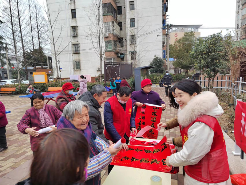 活动现场,志愿者们将一副副承载着浓浓年味的春联送到社区居民手中,居民们拿着写满祝福美满的春联,脸上洋溢着喜庆的笑容。活动结束后,志愿者对社区内广场、道路、楼道的垃圾进行了清理,规范非机动车、机动车等有序停放。