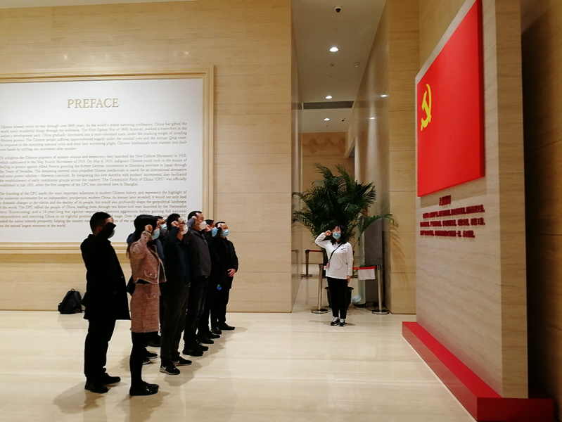 来到中共一大会址,现场丰富的图文和实物,让学员们充分了解了中国共产党成立的历史背景以及中国共产党第一次代表大会召开的全过程。学员们瞻仰中共一大会议场景,聆听感人肺腑的故事,驻足于一件件镌刻历史的文物、一张张弥足珍贵的照片,在革命先辈遗留下来的红色记忆里,回顾党的诞生和百年伟大的党史发展过程。最后支部党员一起重温入党誓词,感悟初心使命,汲取前进动力。