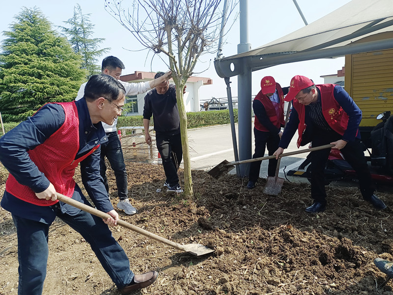 在活动现场,党支部书记汪增武带领支部党员迅速行动,刨坑栽树、填土浇水、挥舞铁锹、挥洒汗水,经过大家的共同努力,一棵棵树苗迎风而立,为春天增添了一抹新绿。
