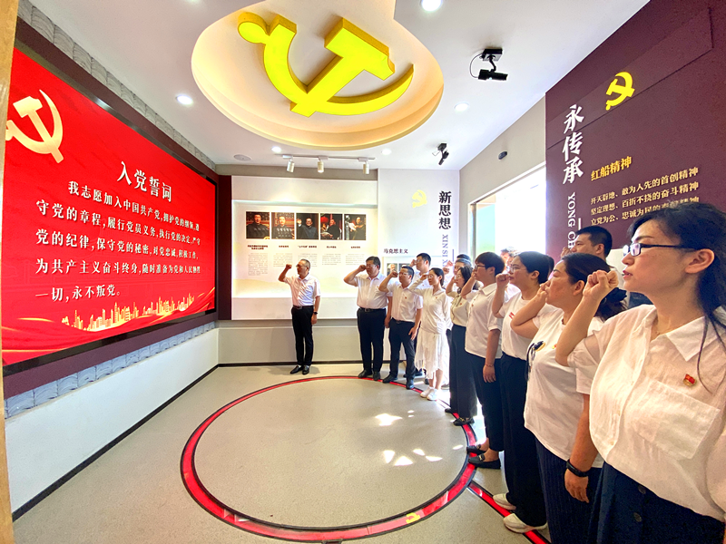 重温入党誓词,感受初心使命。在党性教育馆内,全体党员整齐列队,举起右拳,庄严宣誓:“我志愿加入中国共产党,拥护党的纲领,遵守党的章程,履行党员义务,执行党的决定,严守党的纪律,保守党的秘密,对党忠诚,积极工作,为共产主义奋斗终身,随时准备为党和人民牺牲一切,永不叛党。”在铿锵的誓言中,初心受到洗礼,理想信念更加坚定,充分激发了党员的责任感和使命感。