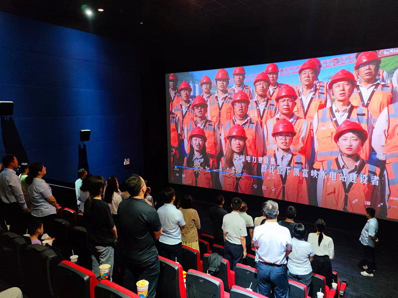 在电影放映前,大家齐声共唱爱国歌曲,借此抒发爱国情怀;共同观看根据江苏省灌云县开山岛民兵哨所所长王继才事迹改编创作的电影,感受“人民楷模”与其妻子驻守开山岛32年的辛苦历程,学习他们同甘共苦,守护祖国海防边疆的敬业精神。