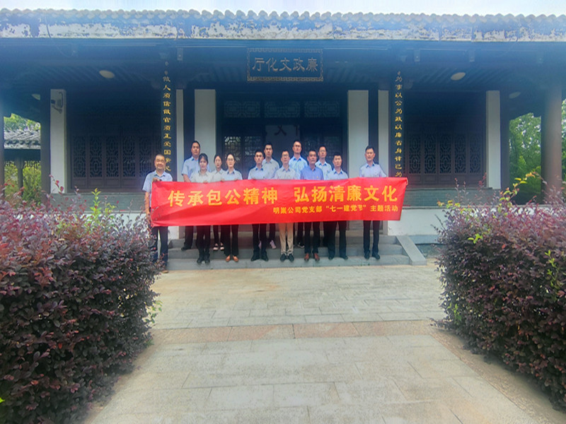 庆祝中国共产党建党102周年,充分发挥党组织战斗堡垒作用和党员先锋模范作用,6月29日上午,明巢公司党支部组织全体党员赴包青天廉政文化公园开展“传承包公精神,弘扬清廉文化”党性教育和廉政教育活动。