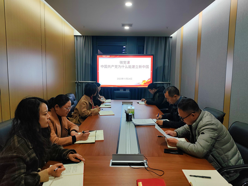 会议集中学习了习近平总书记在金砖国家领导人巴以问题特别视频峰会上重要讲话精神、习近平给上海市虹口区嘉兴路街道垃圾分类志愿者的回信,传达学习《关于认真学习贯彻习近平总书记重要批示精神 把学习推广“四下基层”作为第二批主题教育重要抓手的通知》,观看主题教育相关视频。党员代表领学了《习近平新时代中国特色社会主义思想专题摘编》。最后,支部委员杜仁杰同志围绕“中国共产党为什么能建立新中国”主题,为党员讲“微党课”。