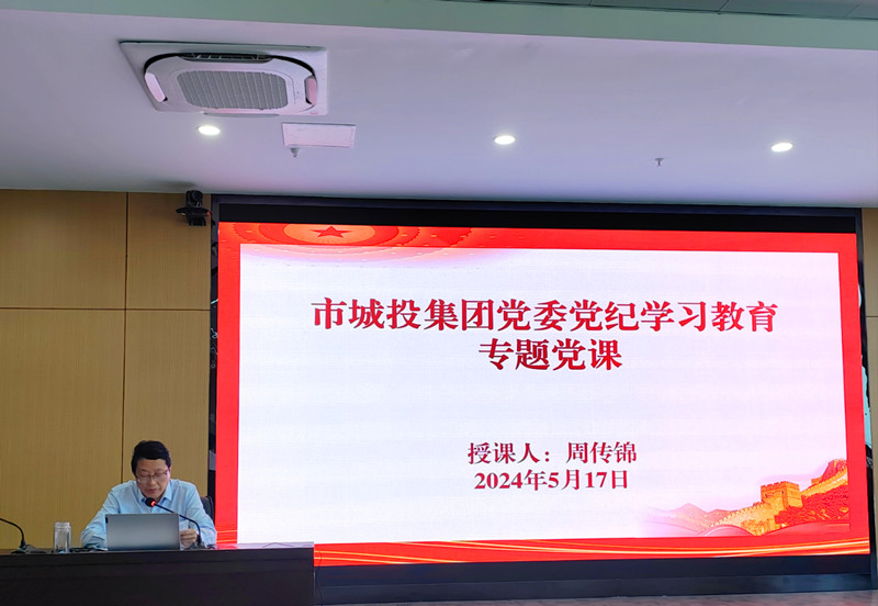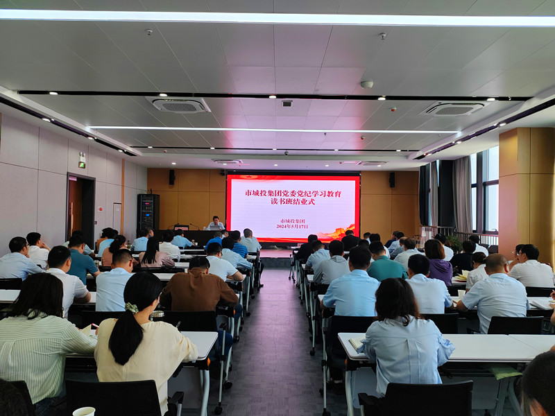 5月17日下午,pg麻将胡了 党委开展党纪学习教育专题党课暨党纪学习教育读书班结业式。集团公司党委书记周传锦作党纪学习教育专题党课报告,并作党纪学习教育读书班结业讲话,集团各级党组织书记、副书记、委员、党务干部,集团本部及子公司部分党员、干部、年轻同志参加本次学习。