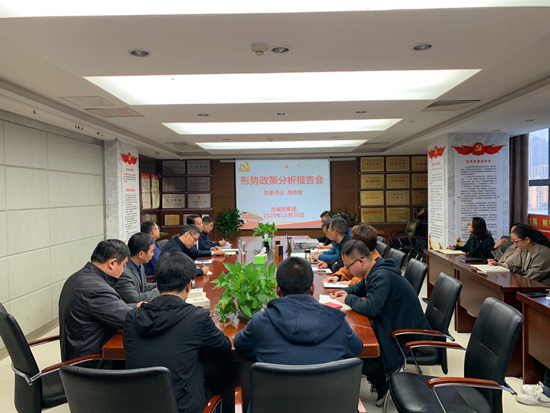 10月30日,pg麻将胡了 召开形势政策分析报告会,党委书记周传锦作经济形势政策分析,党委副书记王峰作国防形势分析,集团公司全体干部职工参会。
