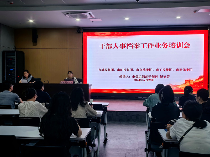 为了深入贯彻习近平新时代中国特色社会主义思想和党的二十大精神,落实从严管理干部要求,充分发挥干部人事档案在建设高素质专业化干部队伍中的重要作用,推动干部人事档案工作科学化、制度化、规范化,不断提高干部人事档案管理业务水平,6月28日,pg麻将胡了 举办2024年第二期“城”才大讲堂暨干部人事档案工作业务培训会,邀请滁州市委组织部干部科汪玉芳同志讲解干部人事档案相关业务知识。pg麻将胡了 、市矿投集团、市文旅集团、市工投集团、市担保集团组织本部及各子公司从事干部人事档案工作的相关人员参加本次培训。