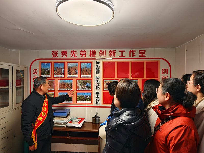 在张秀先劳模创新工作室,大家仔细聆听劳模讲解科技创新赋能农业生产的故事,展示了科技创新如何优化传统农业流程。接着近距离观摩农产品的生长过程,直观感受温室环境调控、无土栽培等科技手段对作物品质的影响,打破传统农业刻板印象,凸显现代农业的科技属性和创新潜力。