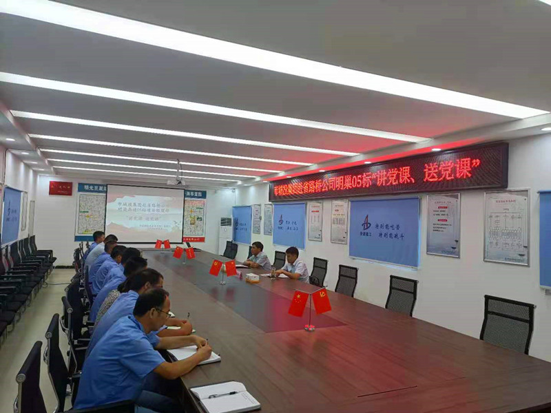 6月16日,pg麻将胡了 党委委员、副总经理高国先赴省路桥集团明巢高速05标项目部举办学习党史专题党课教育,项目部主要负责人及党支部20余人参加。