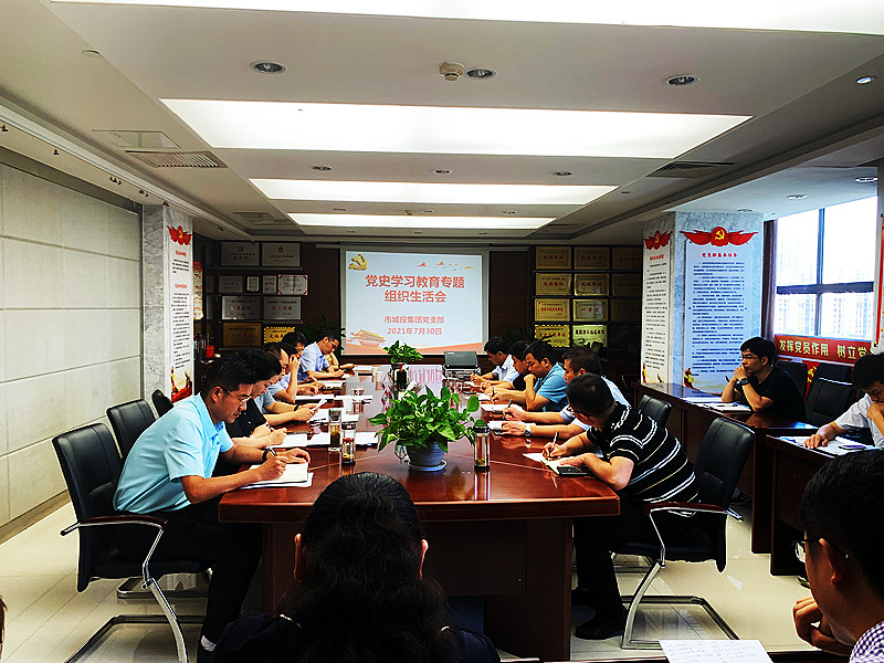 7月30日,pg麻将胡了 党支部召开党史学习教育专题组织生活会,集团公司党委班子成员及党支部党员参加会议,市财政局机关党委委员衡友元列席会议。