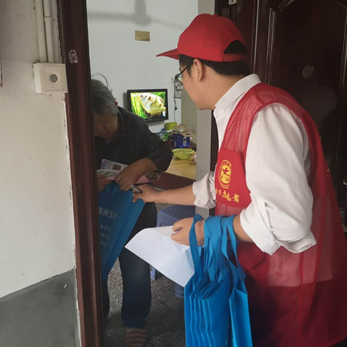 7月17日,市pg麻将胡了 公司组织志愿者结合“周五一小时 扮靓我的家”新时代文明实践志愿服务活动开展文明创建入户宣传。