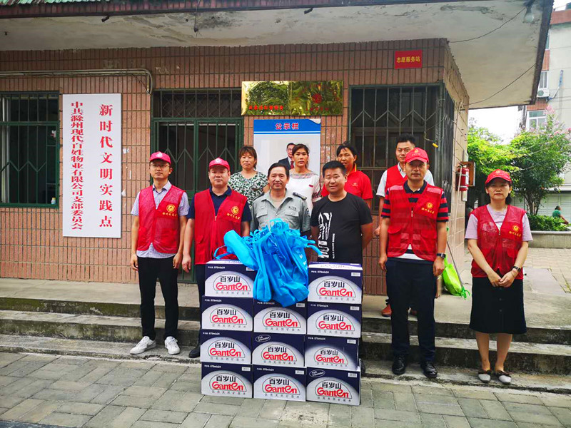 8月28日,市pg麻将胡了 公司联合市城铁公司志愿者前往凤阳路包保社区开展送清凉慰问活动,为凤凰四村小区物业一线人员送去毛巾、风油精、藿香正气水、矿泉水等防暑降温用品。