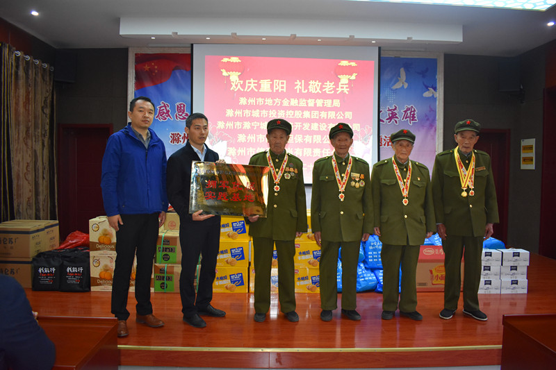 在纪念抗美援朝胜利70周年及重阳节来临之际,10月23日上午,pg麻将胡了 联合市金融局、城铁公司、市担保公司和信和典当公司共同赴滁州市光荣院开展慰问活动,给老军人、老党员带去关爱和慰问品。