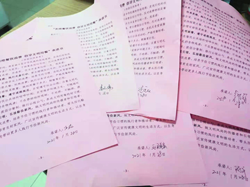 1月28日,pg麻将胡了 组织开展了“拒绝餐饮浪费 倡导文明用餐”签名承诺活动,向全体在职人员传达学习了习近平总书记关于厉行节约、反对浪费特别是制止餐饮浪费行为的重要指示精神,号召广大干部职工参与到“文明餐桌 拒绝浪费”行动中来。