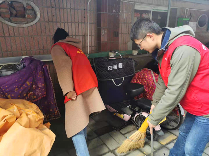 2月7日,pg麻将胡了 组织志展者赴凤阳路社区开展以“欢欢喜喜过大年,文明健康过大年”为主题的爱国卫生大扫除活动。