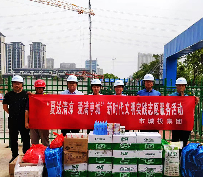 7月15日,pg麻将胡了 党委副书记王峰一行前往pg麻将胡了 大厦项目工地开展2021年“夏送清凉 爱满亭城”慰问活动,为奋战在一线的施工人员送去矿泉水、十滴水、绿豆等防暑降温用品。并叮嘱参建单位合理安排作息,把安全生产放在第一位,严抓工程进度和施工质量,同时做好疫情防控,有序推进项目建设。