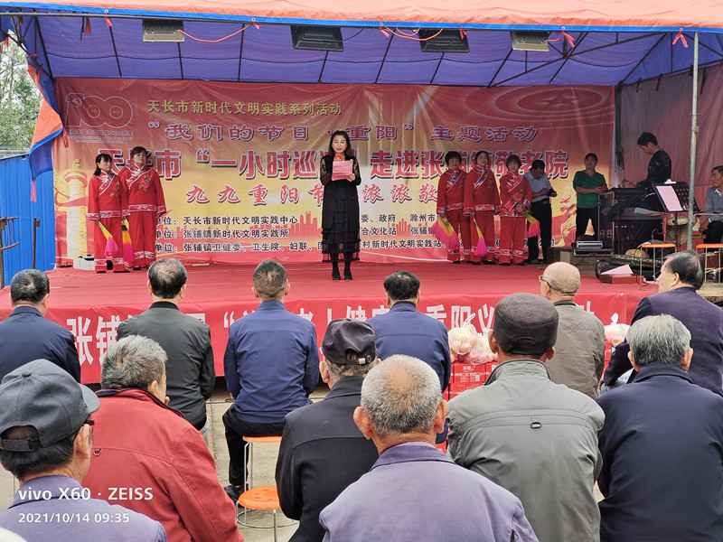 活动现场,张铺镇主要负责同志向老年朋友致以节日的问候和祝福,向辛勤筹备此次活动的所有工作人员表示衷心的感谢。随后,天长市“一小时巡演”演出队为老年朋友表演了精彩的节目,给老人带来了欢歌笑语,赢得了老年人的阵阵掌声。表演期间,演员们与场下的老人频频互动,发放慰问品。