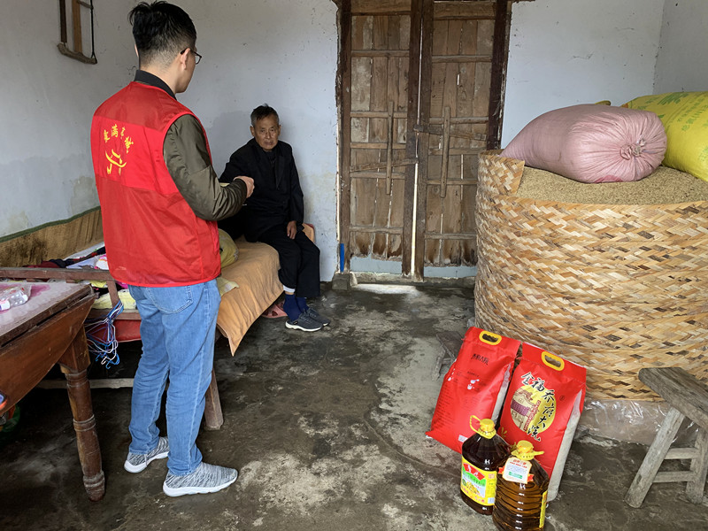 现场活动结束后,pg麻将胡了 志愿者来到张铺镇兴隆村方坝村民组和吴岗村民组慰问两户困难老人,为老人送上慰问品以及节日的问候。