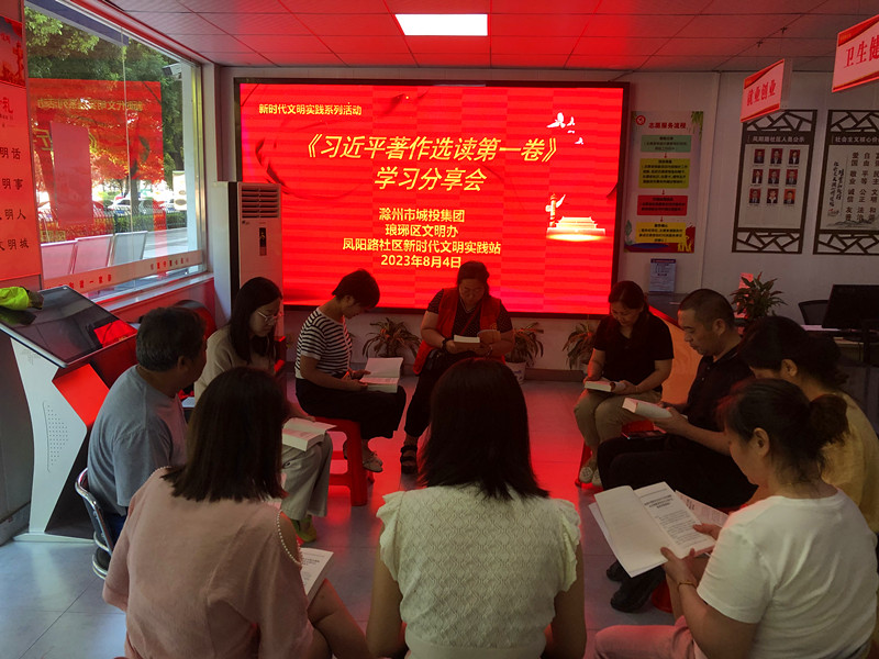 为深入学习贯彻习近平新时代中国特色社会主义思想,2023年8月4日,pg麻将胡了 联合凤阳路社区开展《习近平著作选读》学习分享活动。